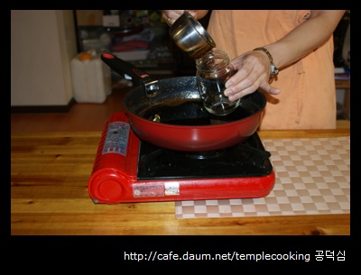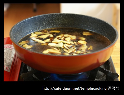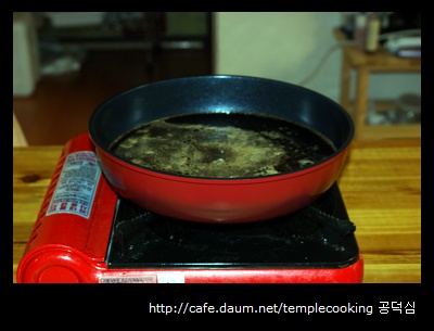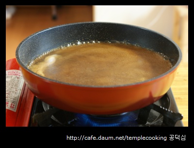(이때 약불에서 은근한 거품이 후라이팬을 모두 매꿔질 때 불을 꺼주어야 한다.)