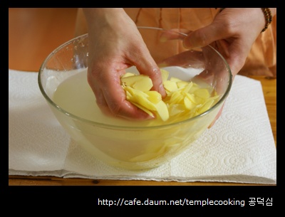 1. 생강은 얇게 편으로 썰어주어야 한다